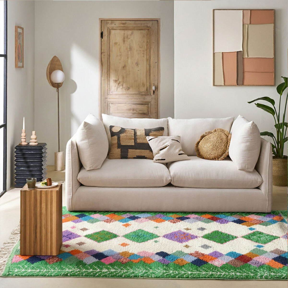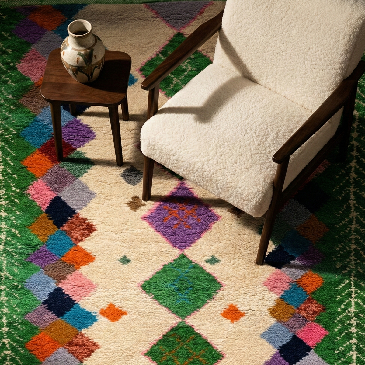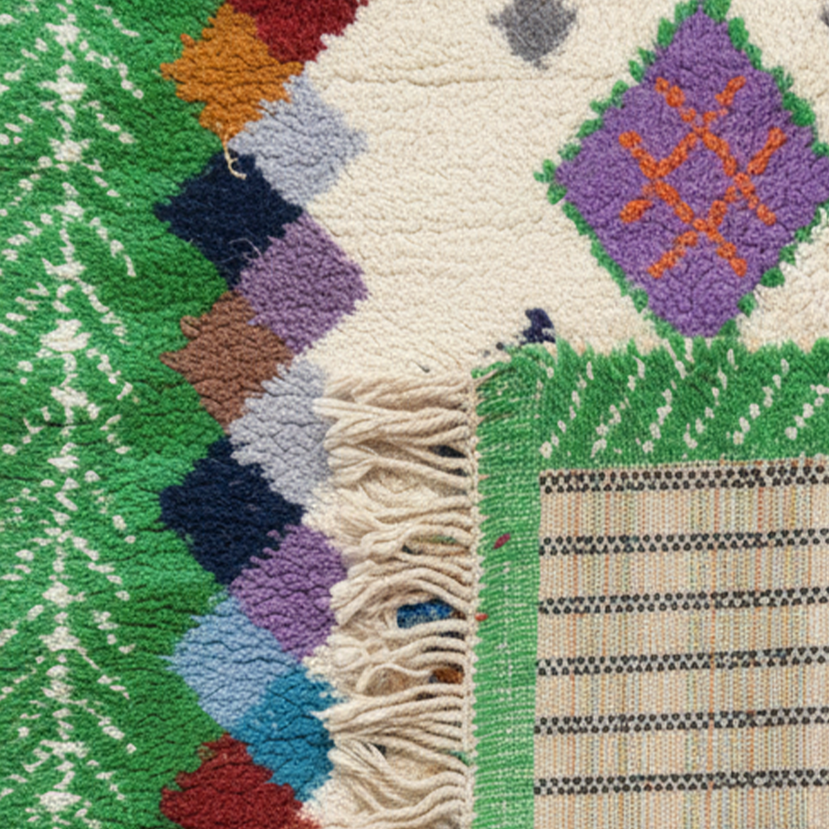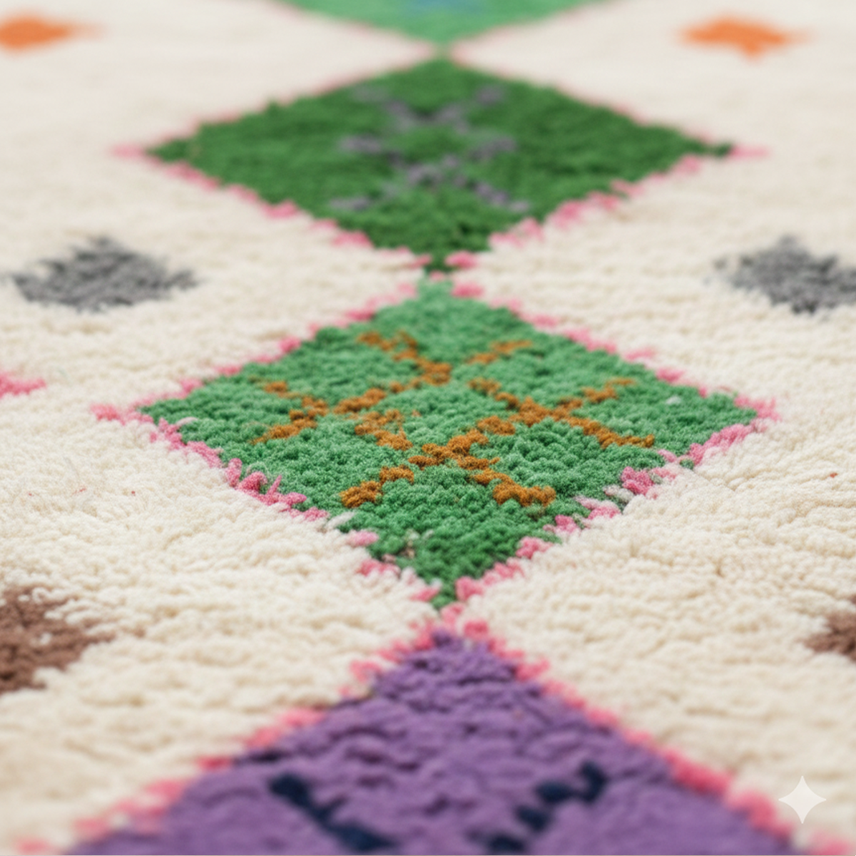 Handwoven in Morocco using 100% natural wool, each Zarbya rug is crafted on traditional looms by skilled artisans. Subtle variations in texture, tone, and weave are natural marks of its handmade character.