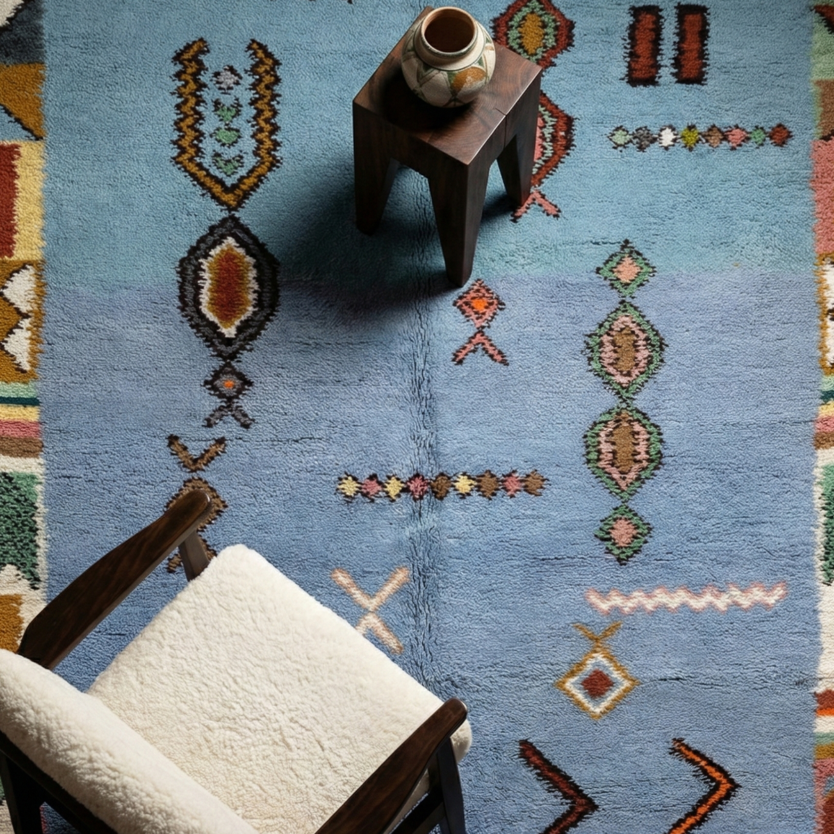 Handwoven in Morocco using 100% natural wool, each Zarbya rug is crafted on traditional looms by skilled artisans. Subtle variations in texture, tone, and weave are natural marks of its handmade character.